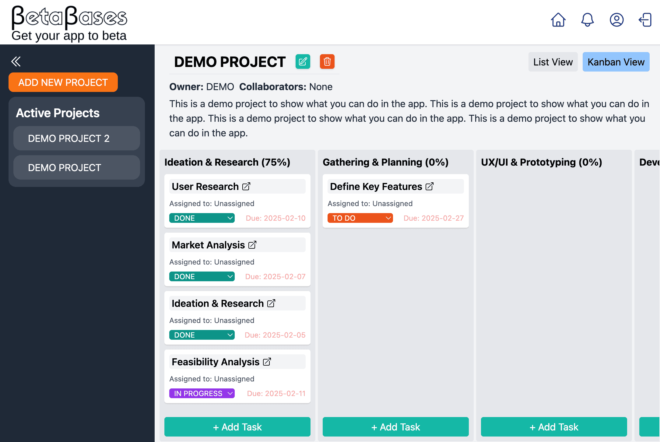 Betabases - Project Management